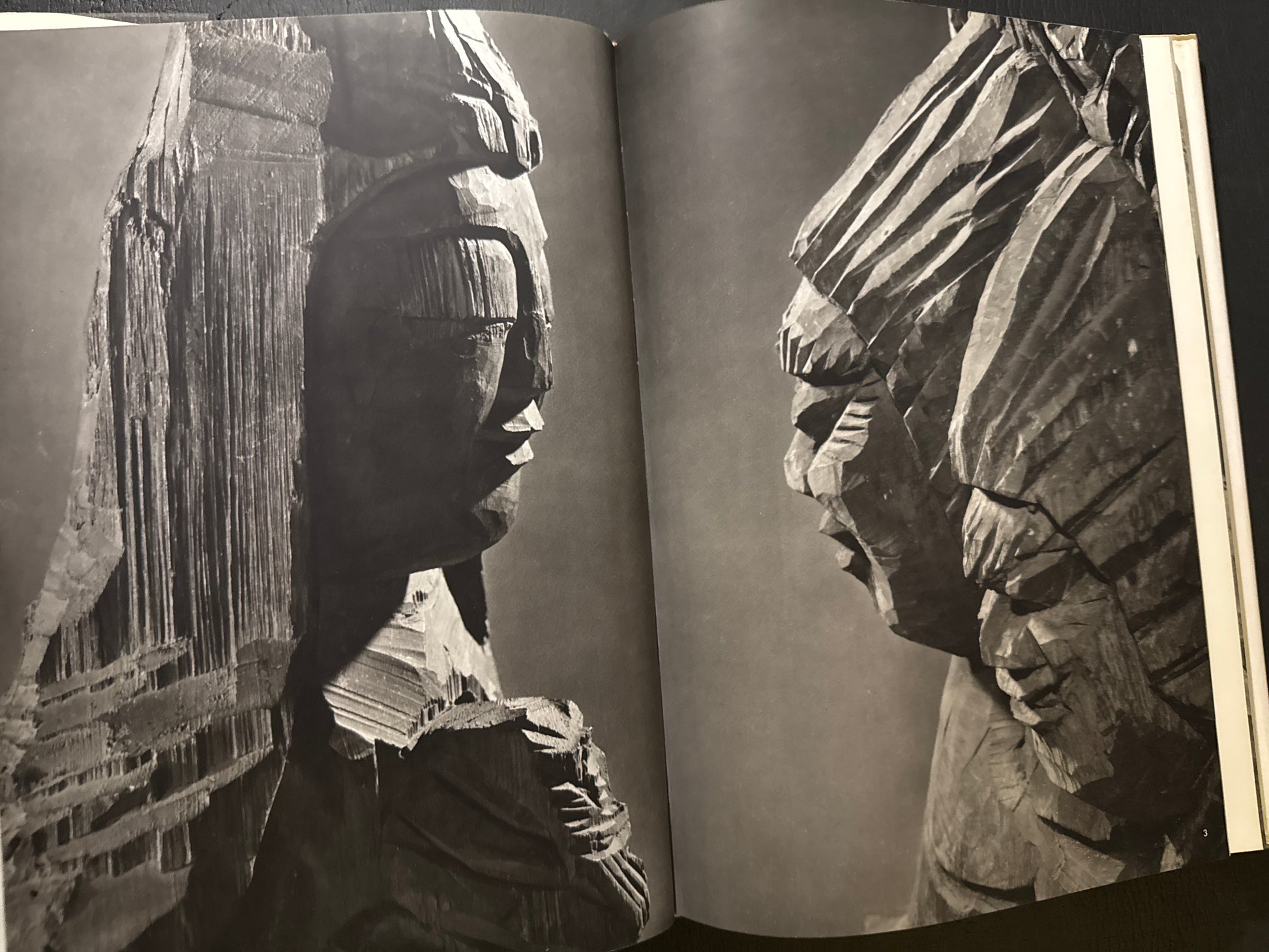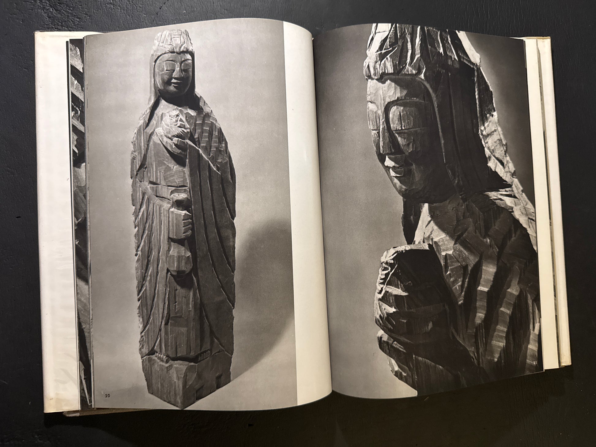 A sculptural art book of the 17th-century Buddhist monk Enku. Enku was a wandering monk who never settled down nor aligned himself with the Buddhist establishment — like a hippie, he traveled all over Japan carving Buddhist and Shinto statues wherever he went. This beautiful photobook was published in 1961 in a limited edition of 800 copies